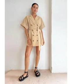 Button-Down Short-Sleeve Belt Commuter Loose Suit Dress Wholesale Dresses N4623070600032