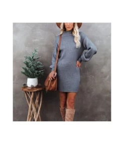 Fashion Solid Color Long Sleeve Round Neck Knitted Dress Wholesale Dresses V5923053100006
