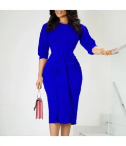 Fashion Solid Color Pleated High Waisted Hip Pencil Dress Wholesale Dresses N5923080800081