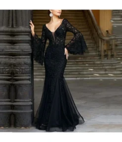 Sexy V-Neck Lace Embroidery Fishtail Slim Evening Dresses Wholesale Dresses N5923081800027