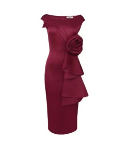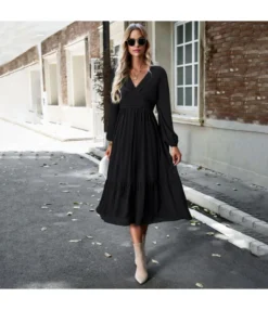 Elegant Flower Petal Sleeve Solid Color Square Neck Long Dress Wholesale Dresses V5923041200032