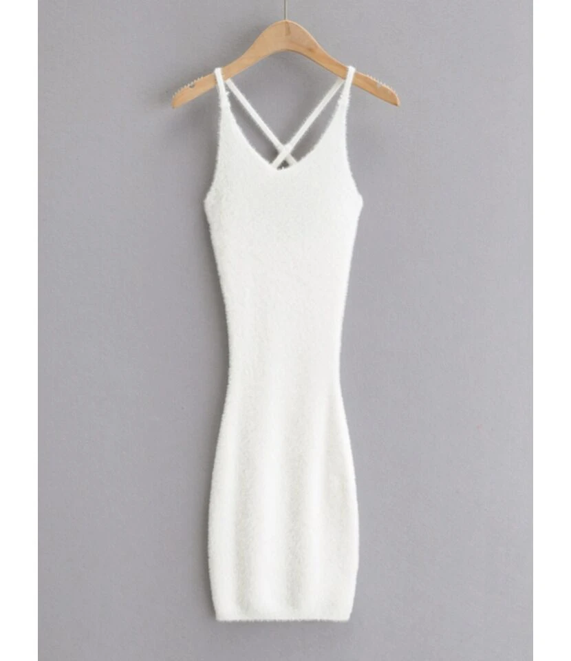 Criss Cross Back Fuzzy Knitted Suspender Dress