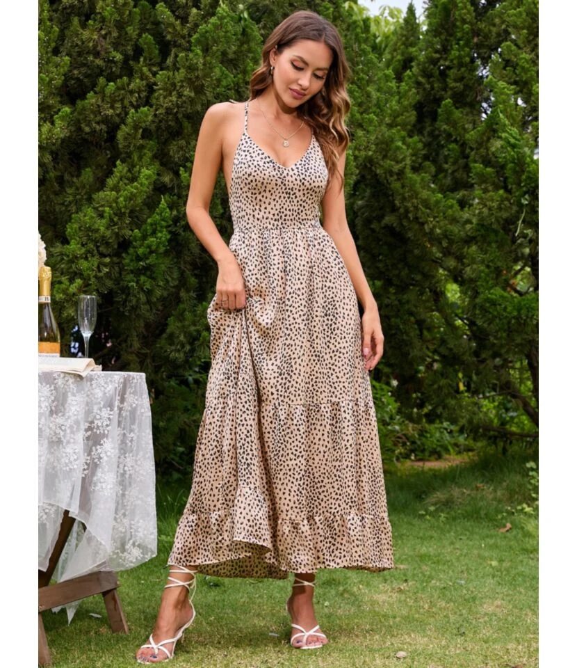 V-Neck Tie-Up Flared Sleeve Boho Slit Maxi Dress Wholesale Bohemian Dress For Women SDN536216