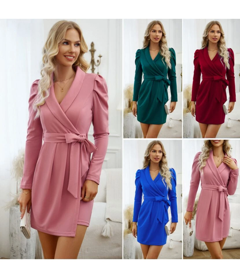 Casual Long Sleeve V Neck Tie Irregular Cake Dresses Wholesale Dresses N5923090100070