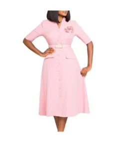 Lapel Button Knit Short Sleeve Plain Bodycon Dress 210601763