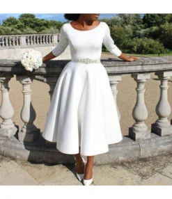 Fashion Solid Color Long Sleeve High Waist A-Line Dress Wholesale Dresses N5923080800075