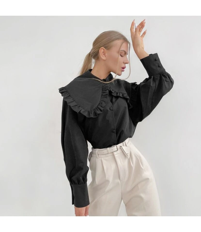 Fashion Doll Collar Tops Single-Breasted Solid Color Loose Wholesale Womens Long Sleeve T Shirts STN560920