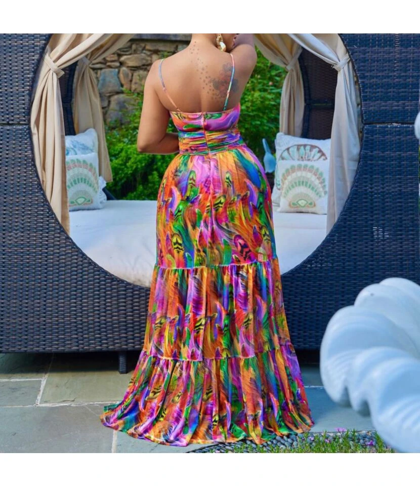 Elegant Ruffle Sleeve Floral Print Strapless Collar Long Dress Wholesale Dresses V5923041200046
