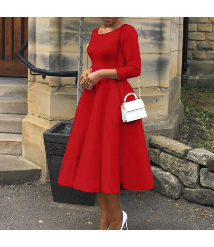 Fashion Solid Color V-Neck Bubble Long Sleeve Fishtail Dress Wholesale Dresses V5923050500012
