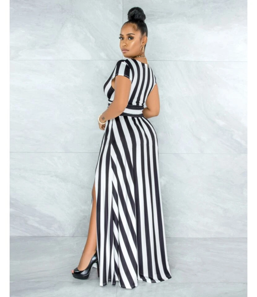 Fashion Striped Slit Design Wholesale Maxi Dresses Deep V Sexy Womens Clothing SD203474
