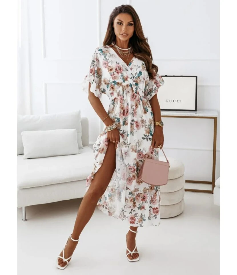 Be the first to review “Floral Print Ruffle Sleeve V Neck Elastic Waist Wholesale Maxi Dresses SD203577” Cancel reply