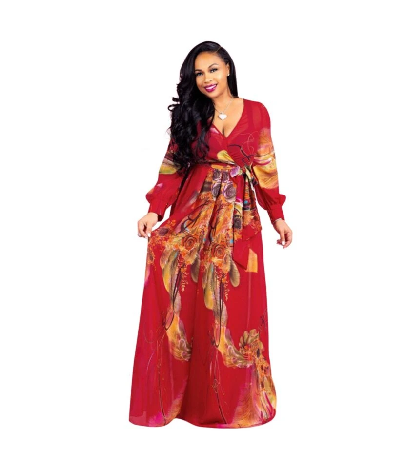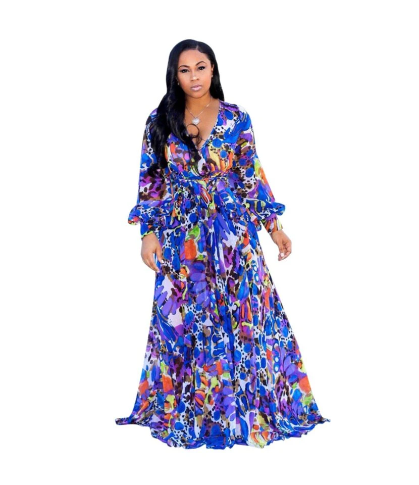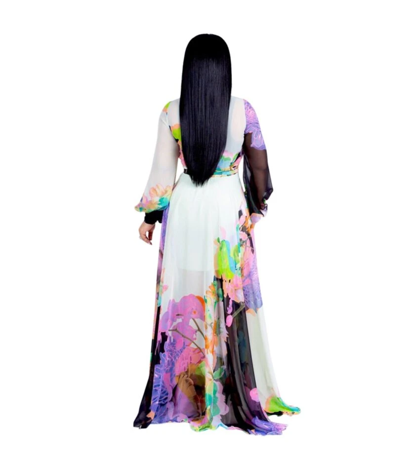 Elegant Ruffle Sleeve Floral Print Strapless Collar Long Dress Wholesale Dresses V5923041200046
