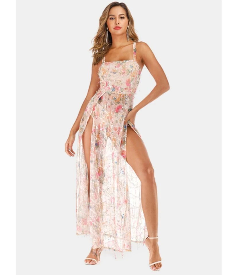 If you are looking for sexier Maxi Dress that fit tighter on the top half of the body and gives you a sexy personality then you are at the right place. SheStar has brought this Fringed Sequin Split Thigh Cami Maxi Dress that is extremely adorable and most admirable Cami Maxi Dress.