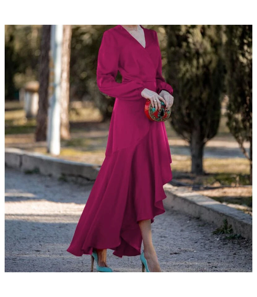 Irregular Ruffled Fashionable Long-Sleeved V-Neck Maxi Dress Wholesale Dresses SDV464122