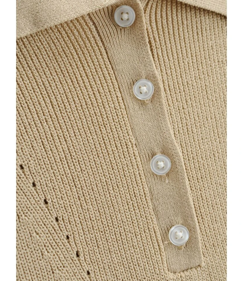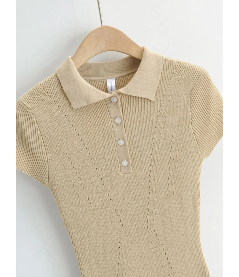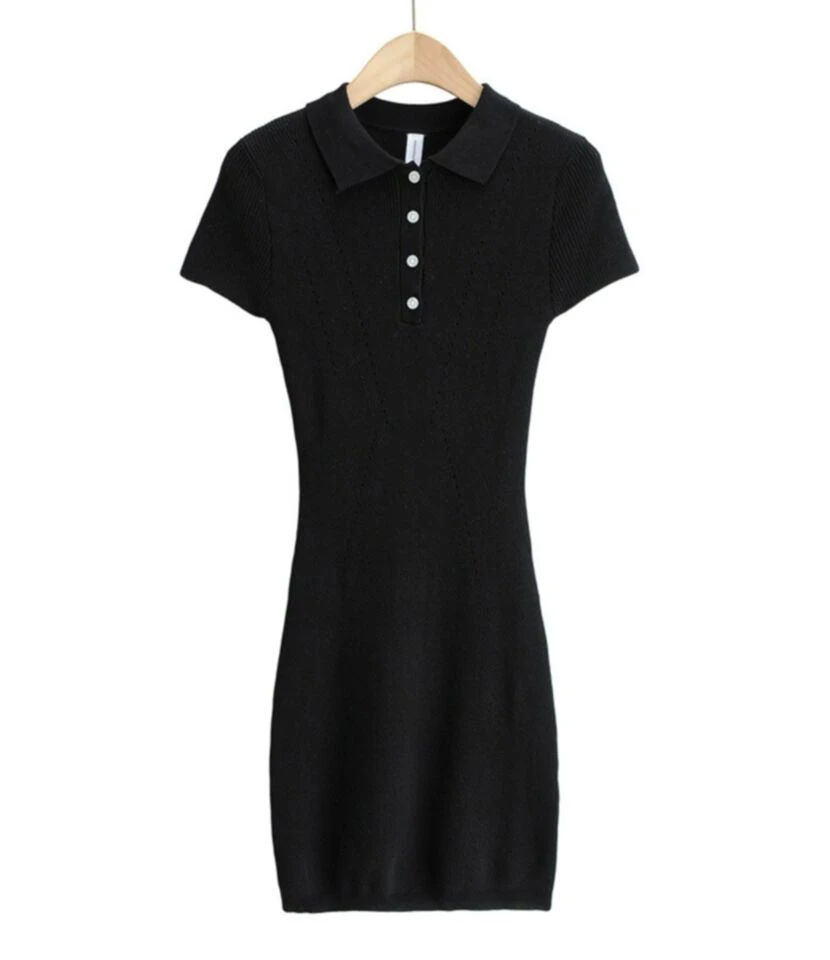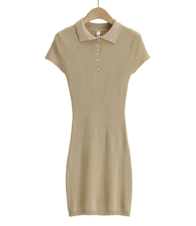 Lapel Button knit Short Sleeve Plain Bodycon Dress