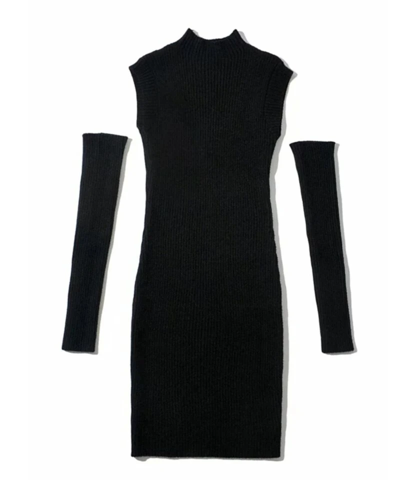 Be the first to review “Mock Neck Plain Ribbed Knitting Dress With Sleeves” Cancel reply