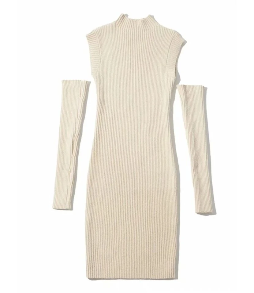 Mock Neck Plain Ribbed Knitting Dress With Sleeves