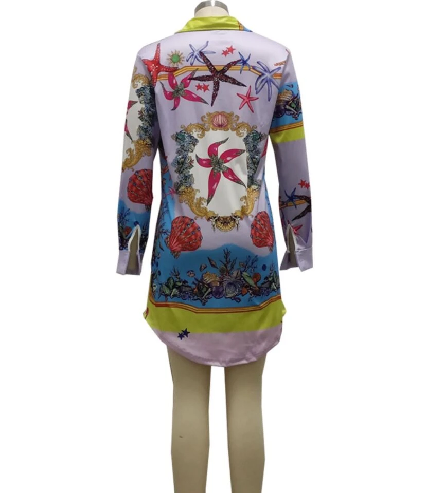 This multi color floral pattern long sleeve shirt dress is such an adorable piece that anyone can have in her wardrobe. As floral prints add an additional plus point to make your mood lively and this multi color floral print dress will make you adore it. The inelastic nature of this fabric makes it clingy and perfectly fit to your body. This thigh-high outfit can provide a view party to people around you. The collars are made in a way that you can flaunt your cleavage as well as your legs. Floral print of this dress is so colorful that it makes this outfit a little funky. This loose fitted outfit can go with any casual event like from a cocktail party to go on a beach date. You can style it in a very simple way because its colors say it all. This outfit is so lightweight that it feels like you’ve worn nothing in the name of clothes.