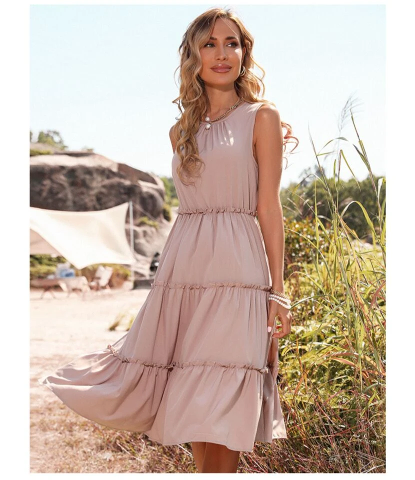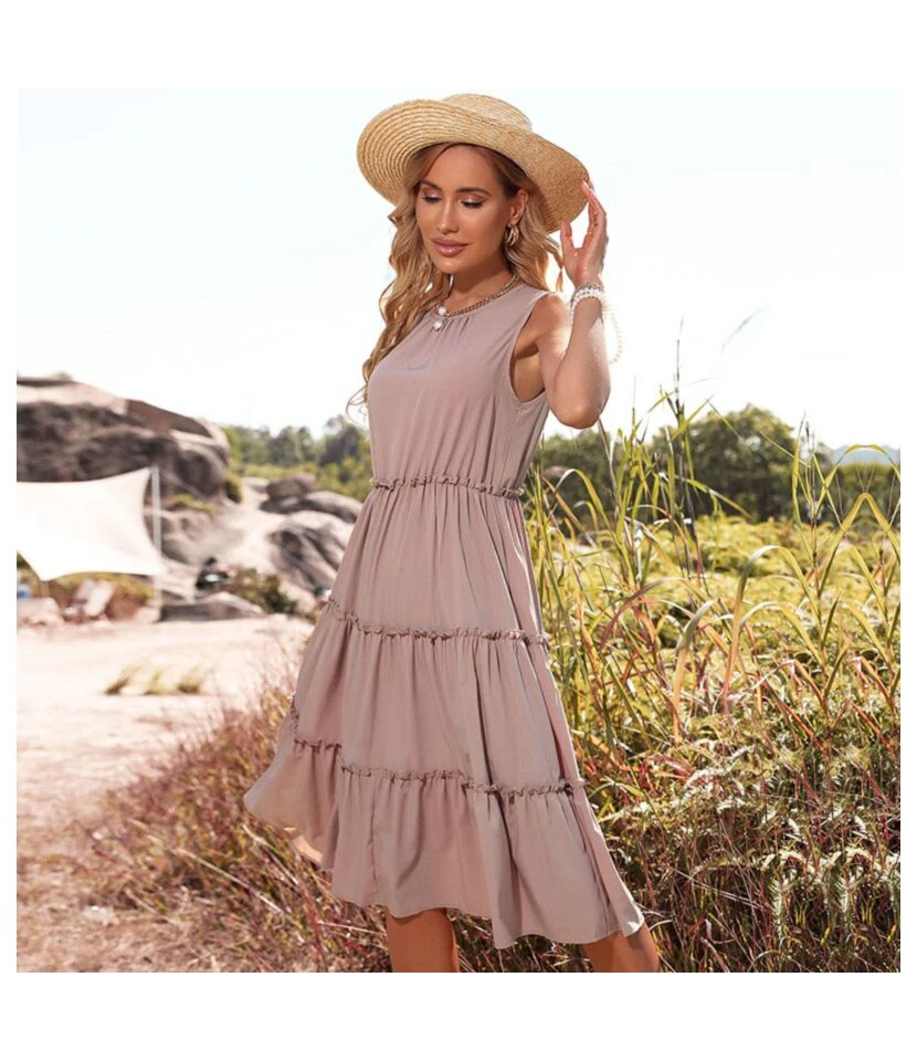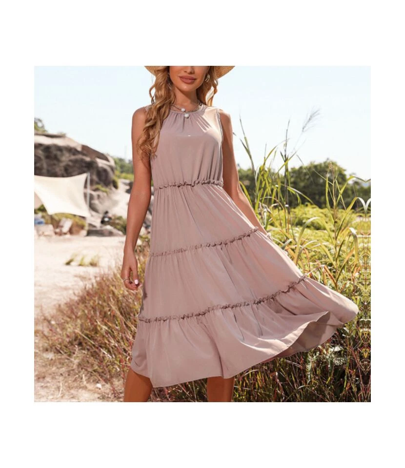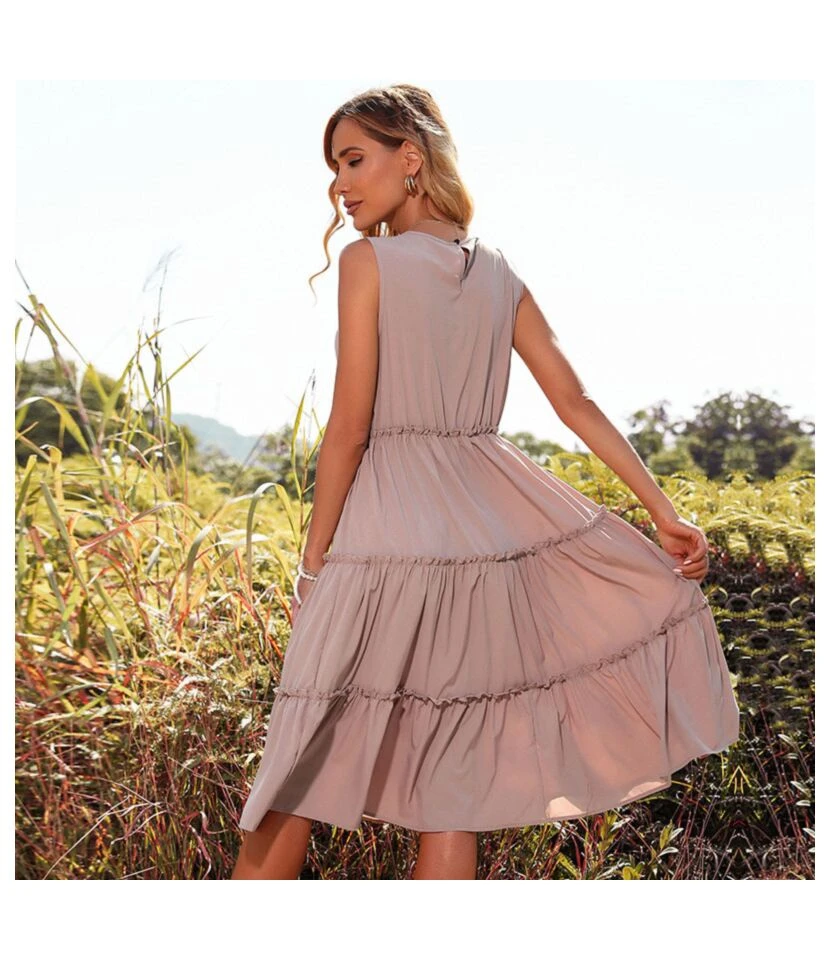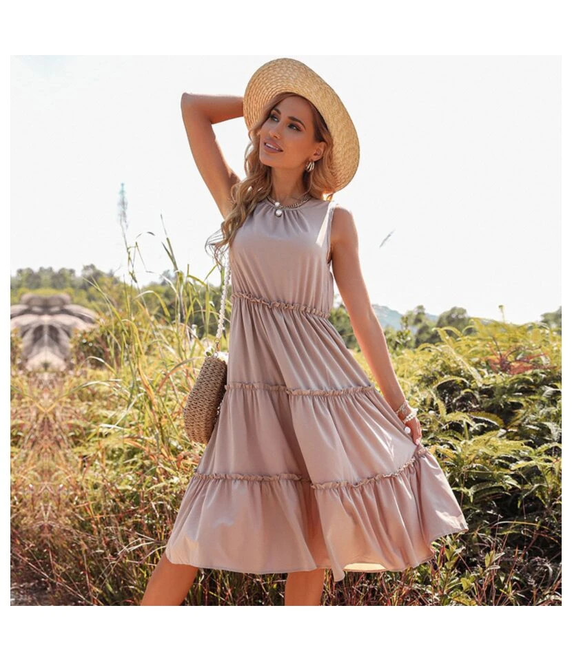 Plain Color Sleeveless Pleated Wholesale A Line Dresses SD168428