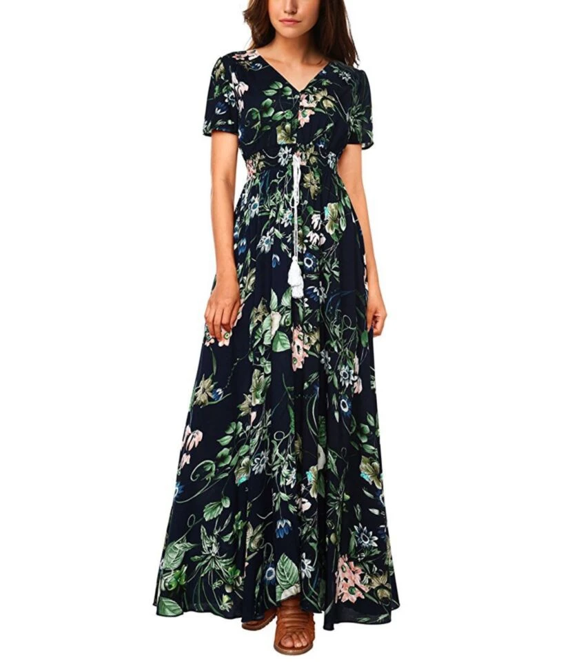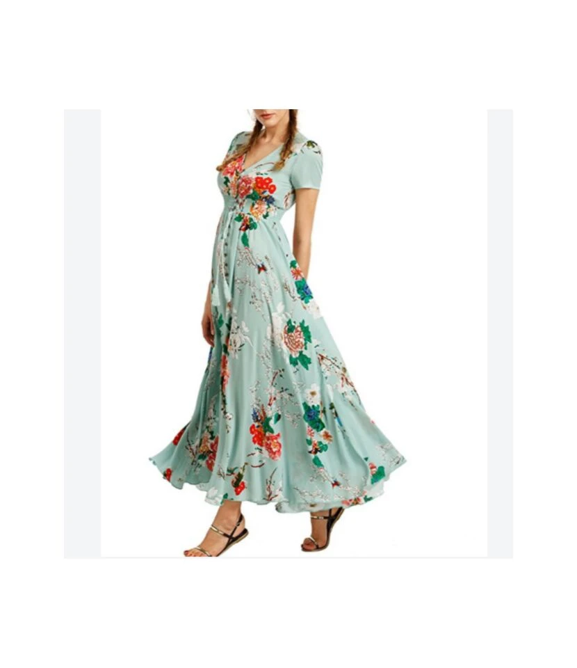 Be the first to review “Printed Retro V-Neck Wide Hem Slit Design Wholesale Maxi Dresses Vacation Dress Trendy SD204093” Cancel reply