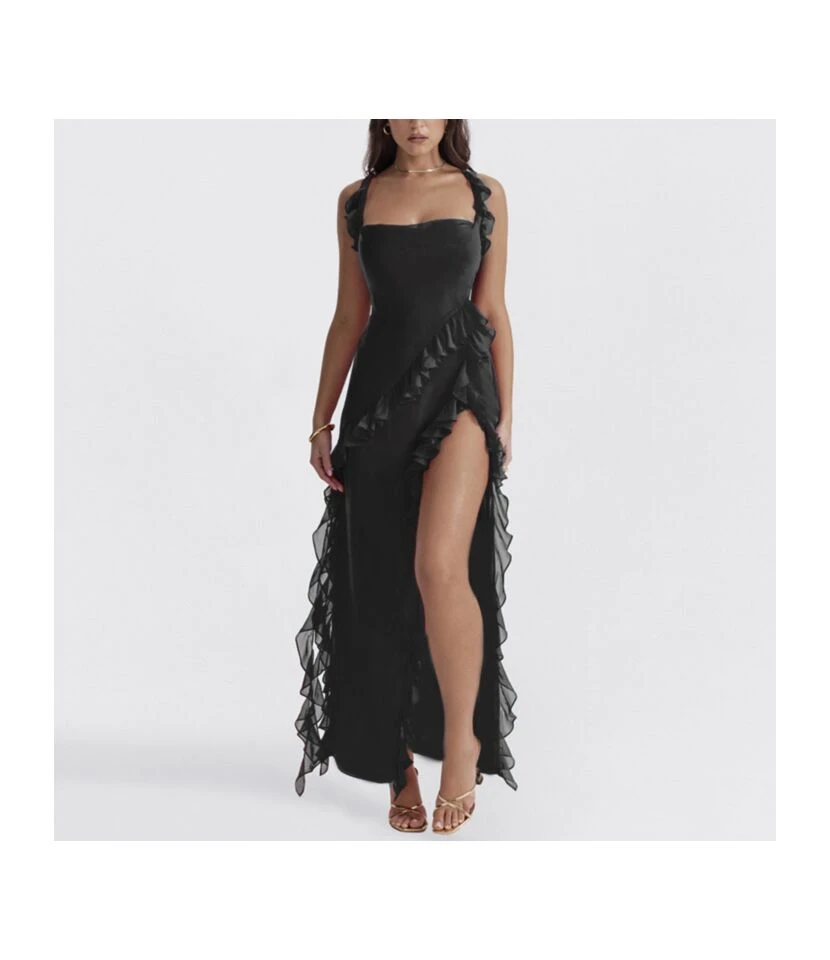 Sexy Solid Color Cape Style Metallic Waistband Hip Wrap Dress Wholesale Dresses N5923080800082