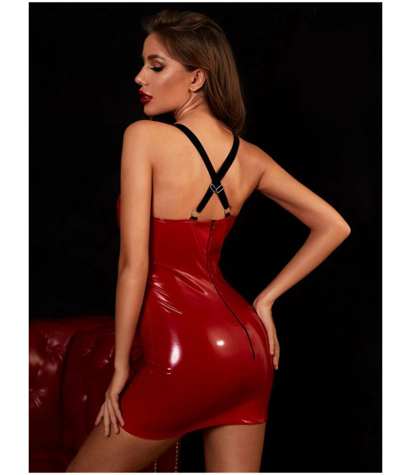 Lotus Leaf Hem Skinny Suspenders Solid Color Low-Cut Dress Wholesale Dresses N46223031400054