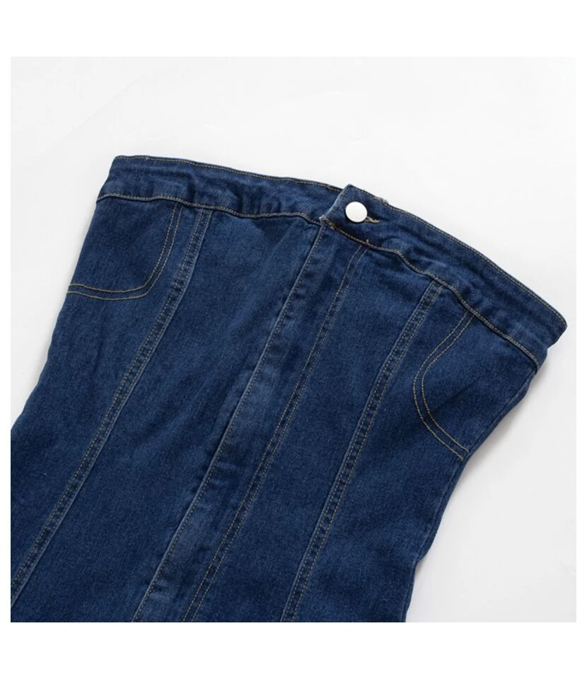 Sexy Off-Shoulder Sleeveless Denim Dress Button-Zip Bodycon Wholesale Dresses SDN561098