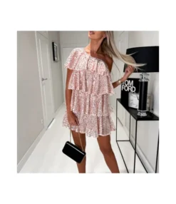 See-Through Round Neck Bubble Sleeve Lace One-Step Dress Wholesale Dresses V5923050600032