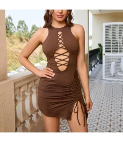 Be the first to review “Sleeveless Sexy Hollow Cross Strap Shirt Slit Tight Mini Dress Wholesale Dresses SDV463925” Cancel reply