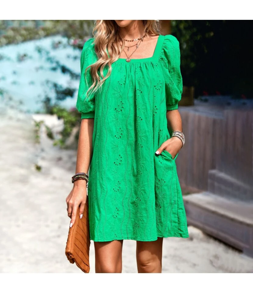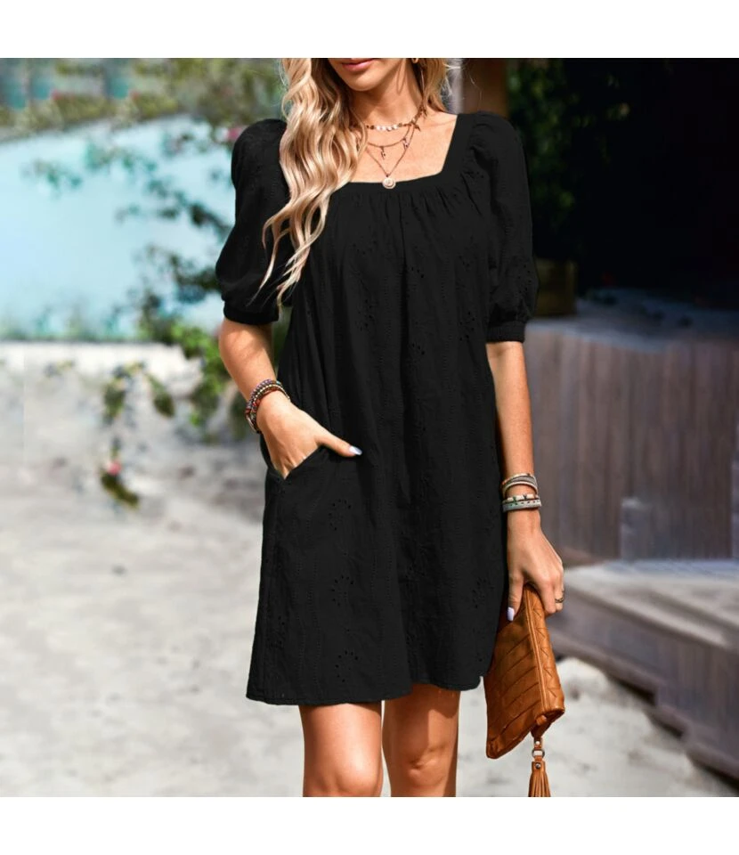 Elegant Flower Petal Sleeve Solid Color Square Neck Long Dress Wholesale Dresses V5923041200032