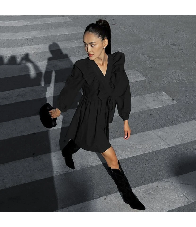 Casual Long Sleeve V Neck Tie Irregular Cake Dresses Wholesale Dresses N5923090100070