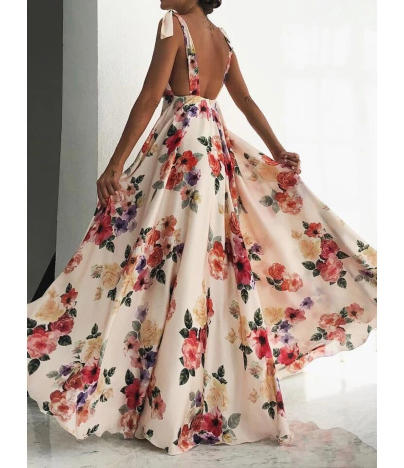 Tie Shoulder Backless Sleeveless Floral Print Cami Maxi Dress