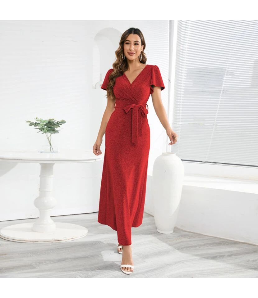 Sexy V-Neck Crossover Ruffle Sleeve Pressed Pleat Dress Wholesale Dresses N5923080800028