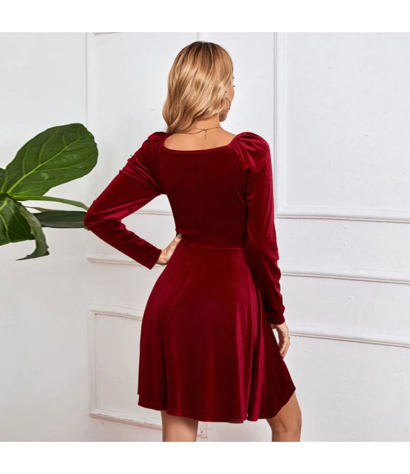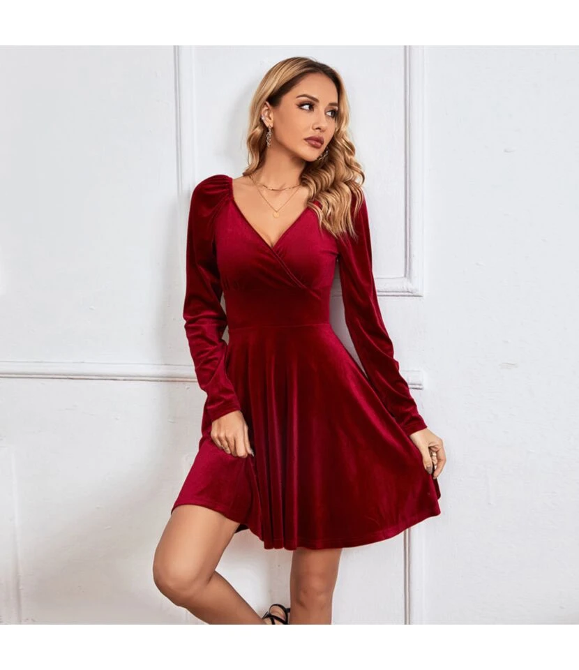 Sexy Deep V Ruffles Sleeve Dress Solid Color Lace-Up Backless Wholesale Dresses SDN560229