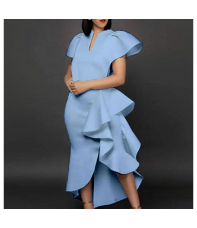 Sexy Solid Color Cape Style Metallic Waistband Hip Wrap Dress Wholesale Dresses N5923080800082