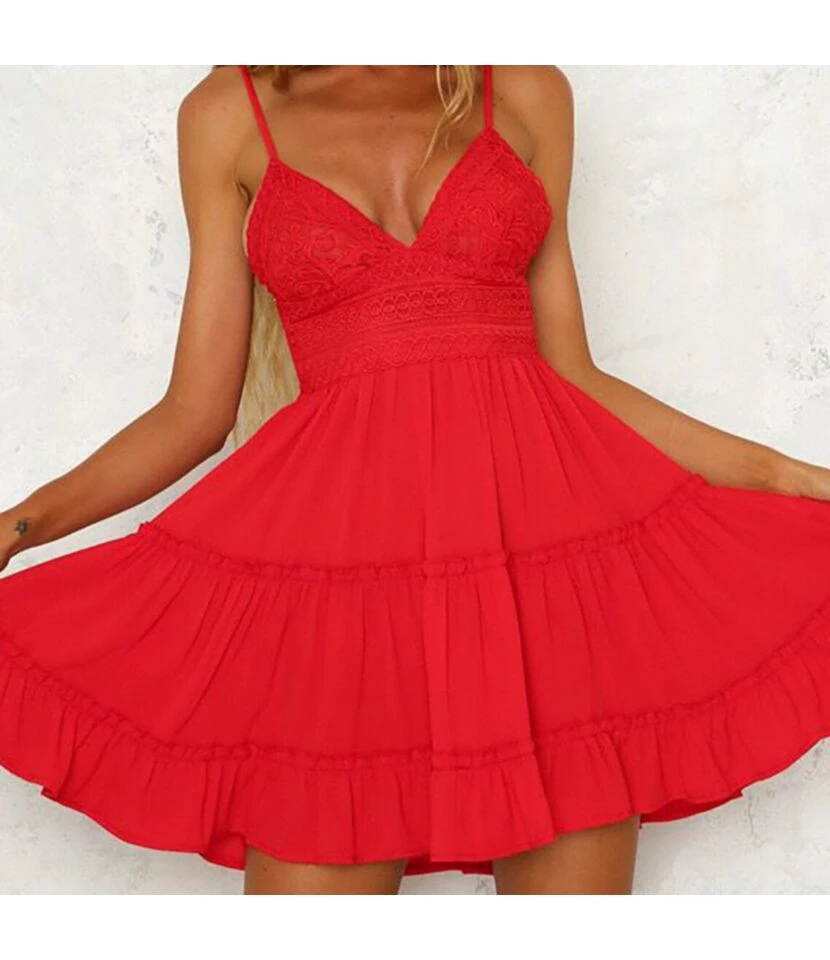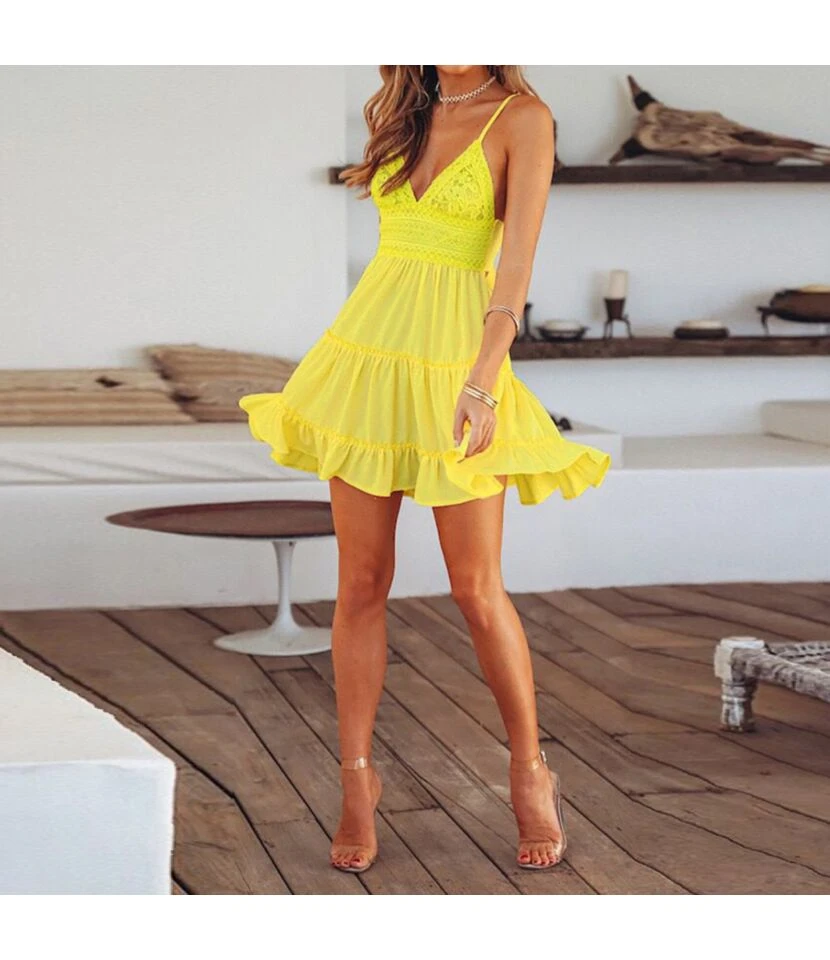 Sexy Deep V Ruffles Sleeve Dress Solid Color Lace-Up Backless Wholesale Dresses SDN560229
